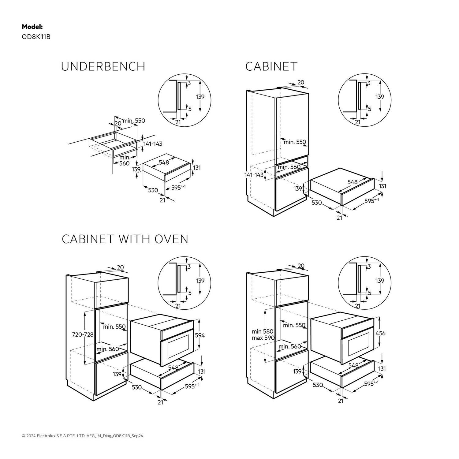 • Built-in dimensions: W56 x D55 x H14,1 cm