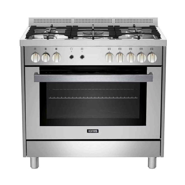 The IGNIS GPD194DLXTF is a 90 cm gas cooking range made in Italy, featuring full safety protection and premium performance in a sleek design.